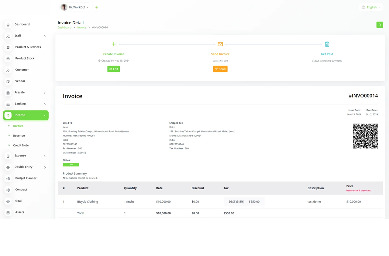 Easily login or create a new account for free. Manage your business processes, customers, and billing from a single, streamlined dashboard. Advanced GST-Compliant Billing Generate invoices and manage billing with full support for Indian GST regulations, ensuring accuracy and fast compliance. Secure Cloud-Based Platform Access your business data and operations securely from anywhere, with reliable cloud storage and top-level protection. Complete Account Management Track transactions, monitor your accounts, and stay organized with powerful account management tools—ideal for growing businesses. Flexible Payment Gateway Integration Accept payments online via popular gateways for hassle-free financial operations and seamless user experience. Customizable Templates Personalize your invoices, quotes, and communications using easy-to-edit templates tailored to your brand. Powerful Mobile App Manage your accounts and billing from your phone—stay in control wherever you go. Detailed Financial Reporting Get real-time insights with comprehensive financial reports to help you make informed business decisions.